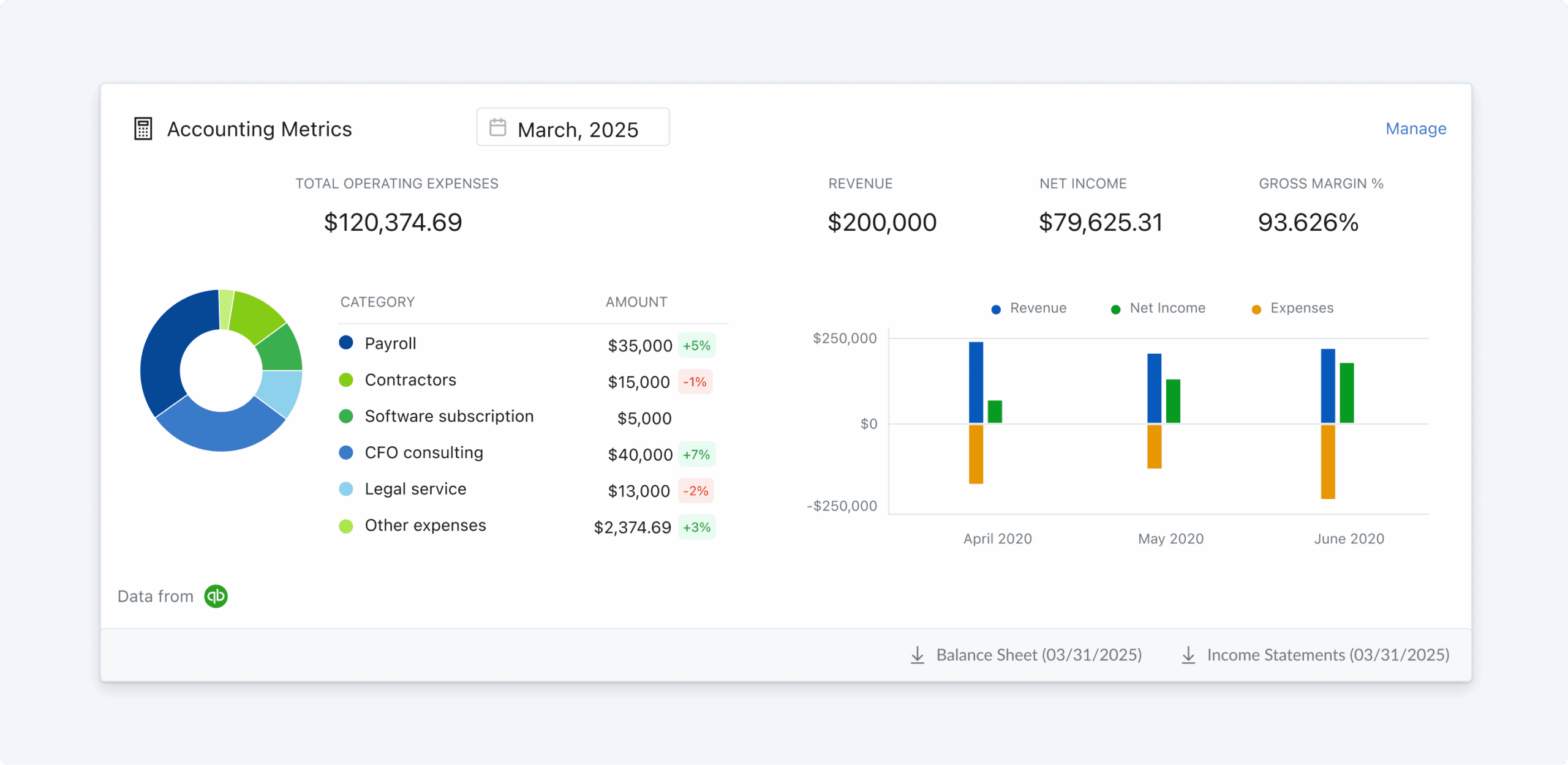 Streamline data sharing: Powerful permissions and integrations with accounting systems help keep your key stakeholders in the loop while keeping your data secure.